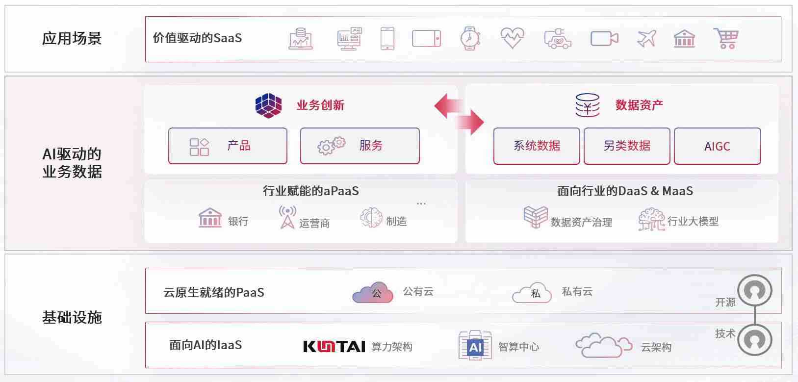 数字时代,,,,围绕企业数字化转型的关键要素,,伟德国际VICTOR1946数码开创性的提出数云融合战略和技术体系框架,,,着力在云原生、、、、数字原生、、、AI原生和信创产业上架构产品和服务能力,,,,为处在不同数字化转型阶段的快消零售、、汽车、、、、金融、、、、医疗、、、政企、、、教育、、、、运营商等行业客户提供泛在的敏捷IT能力和融合的数据驱动能力,,,,构建跨界融合创新的数字业务场景和新业务模式,,助力企业级客户建立面向未来的核心能力和竞争优势,,,,全面推动社会的数字化、、、、智能化转型升级。。。。